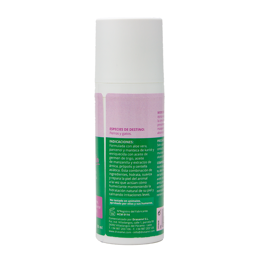 Este indicat pentru menținerea unei stări bune a pielii câinilor și pisicilor, prevenirea problemelor dermatologice și hidratarea pielii, calmând iritațiile minore și ajutând la vindecarea rănilor mici.