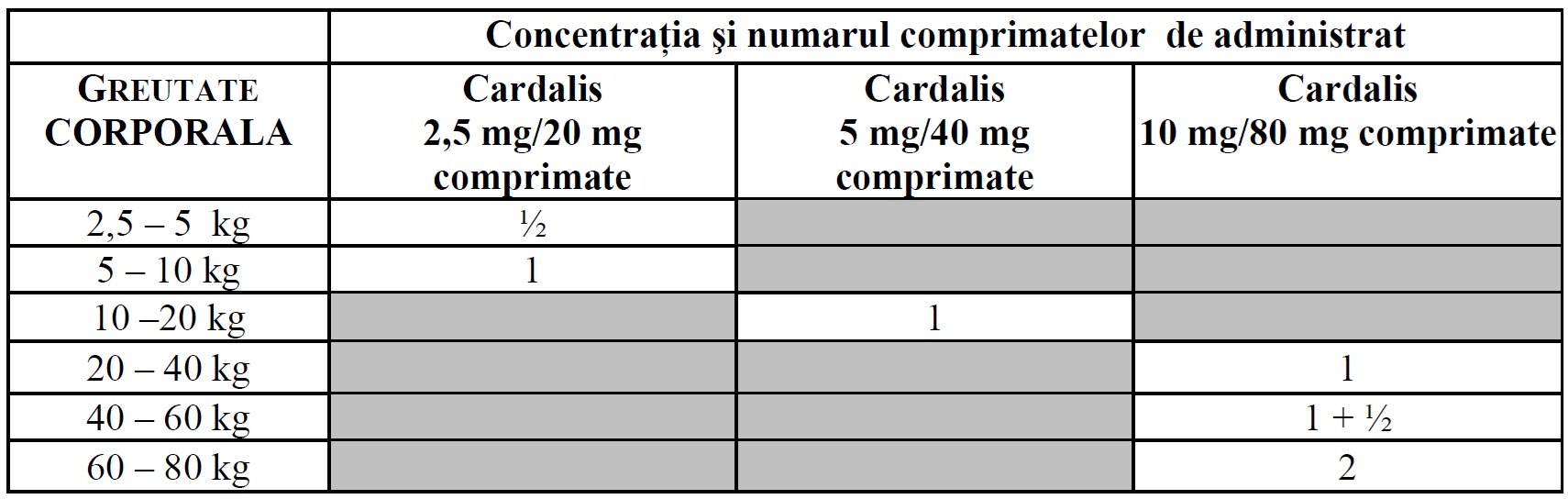 Dozele de 0.26 mg/kg și mai mari trebuie administrate pe o perioadă maximă de 5 zile. După această perioadă, doza trebuie redusă la doza de întreținere și câinele trebuie evaluat de medicul veterinar în câteva zile.